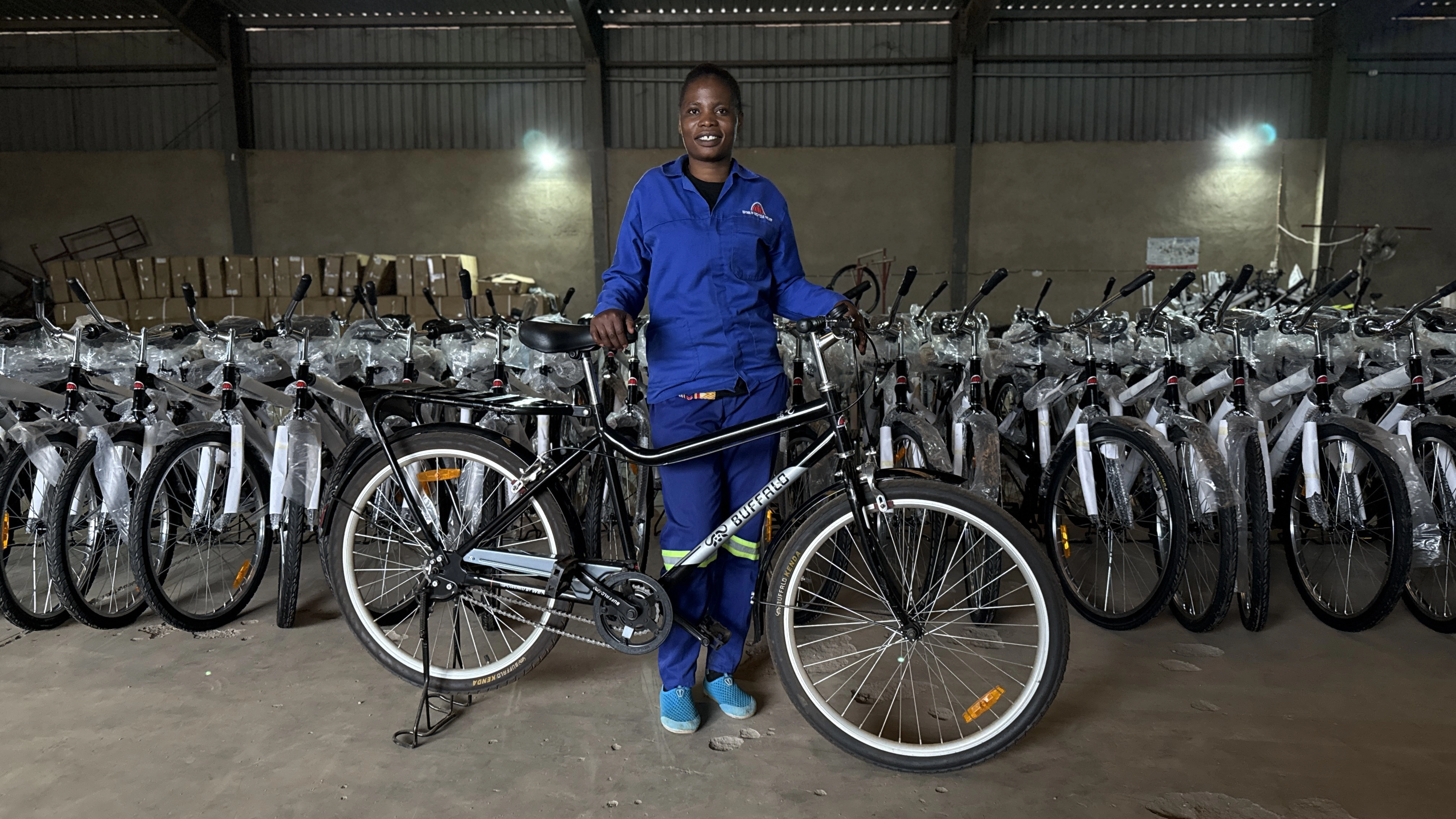 WBR worker with Buffalo Bikes