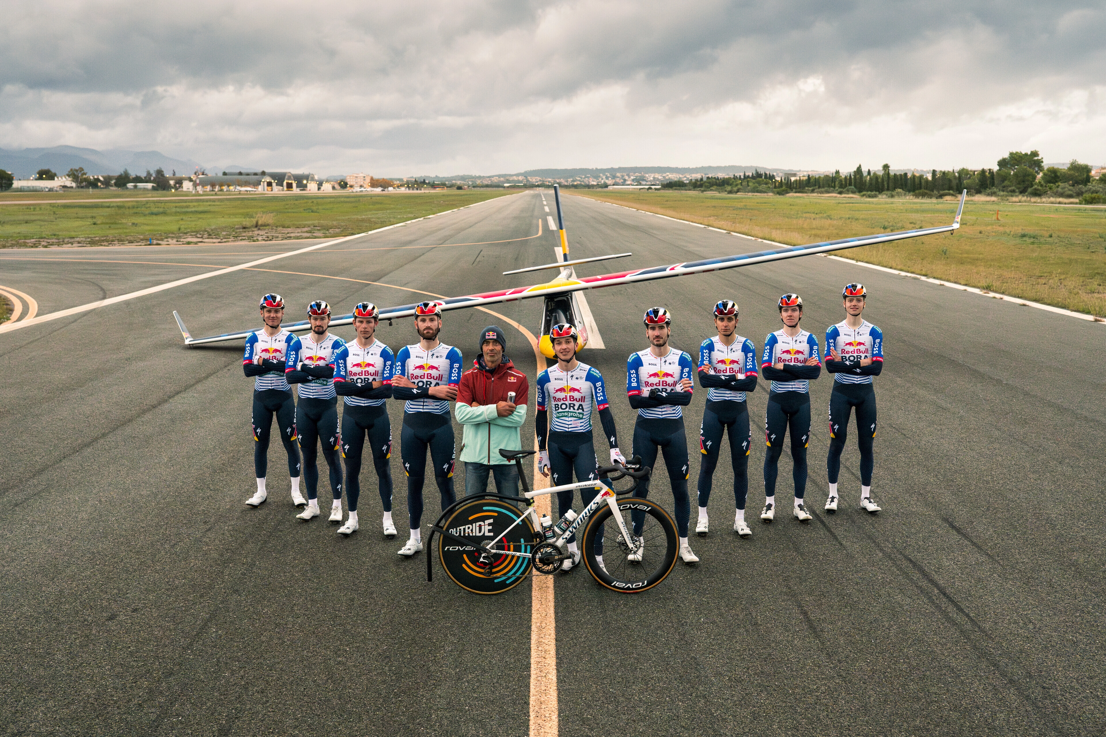 After two trials in Austria, nine of the team's riders were selected to take on the stunt in Mallorca: Adrien Boichis, Nico Denz, Davide Donati, Florian Lipowitz, Jordi Meeus, Laurence Pithie, Gijs Schoonvelde, Callum Thornley, and Tim van Dijke.