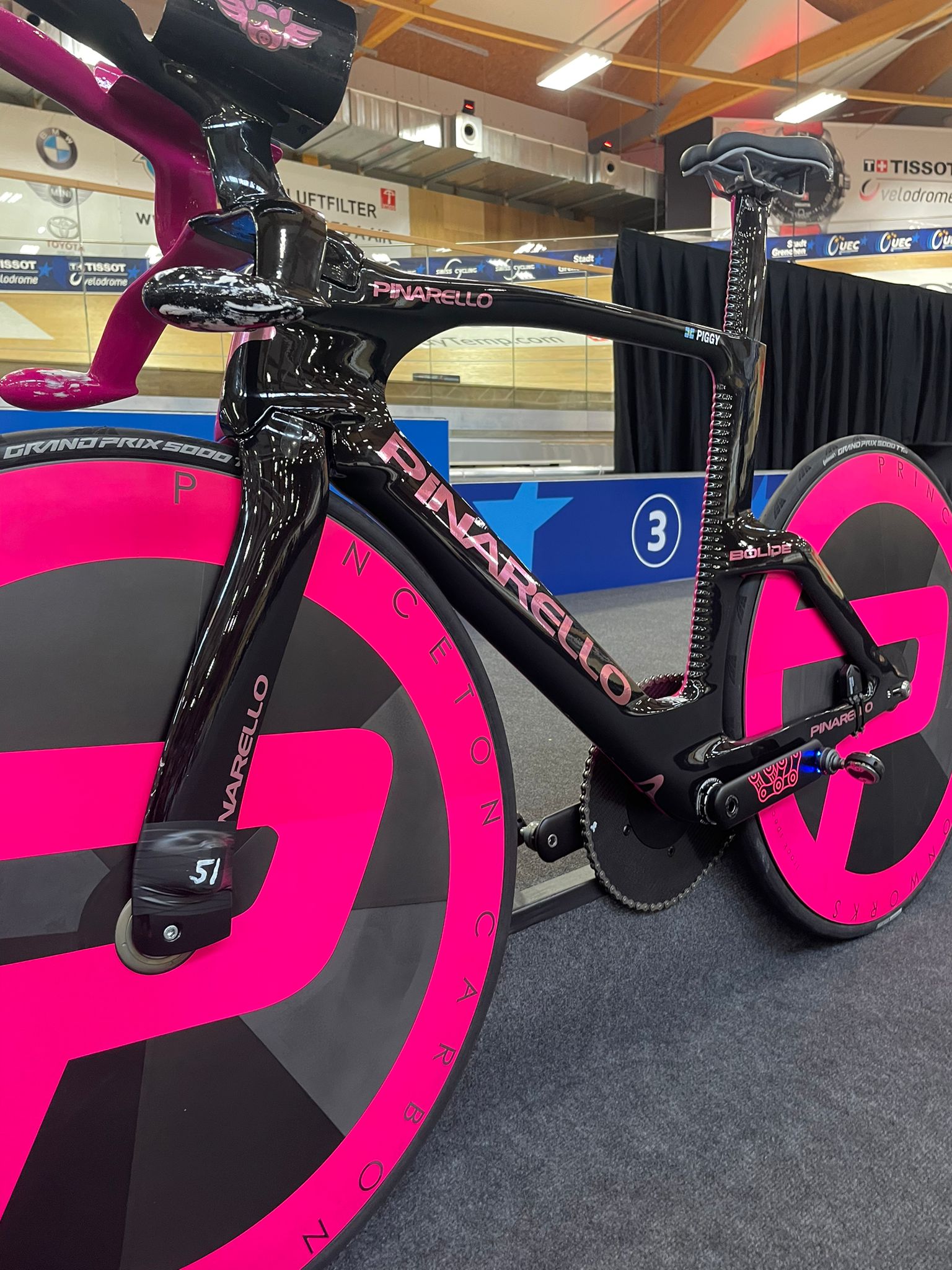 It is the same bike that Ganna and Bigham rode to Hour Record glory in 2022, and the one that Bigham then won the World Championship team pursuit title on, along with Ollie Wood, Ethan Hayter and Ethan Vernon.