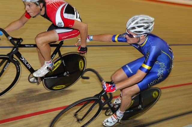 Ben Swift beats Bradley Wiggins in the 10km Scratch. Photos by Andy Jones