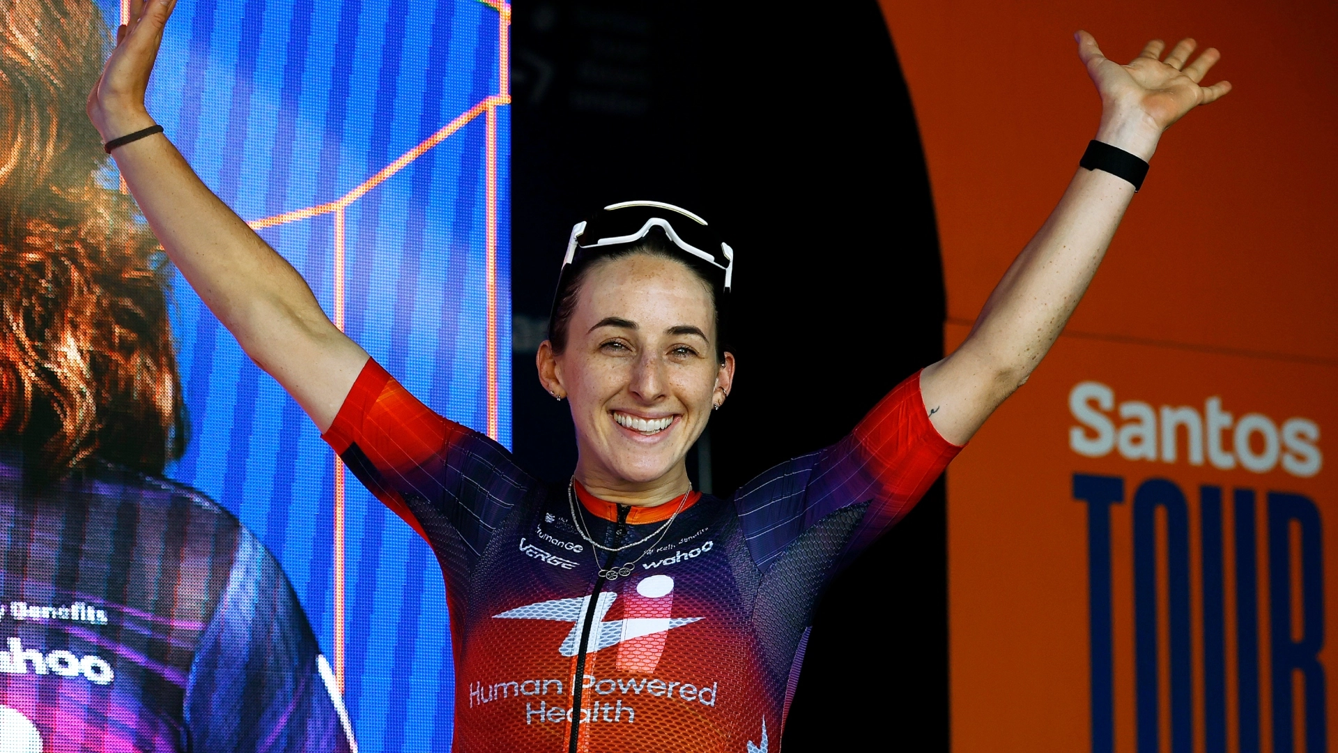 Maggie Coles-Lyster (Human Powered Health) did not arrive in Australia ahead of the Santos Tour Down Under feeling invincible. In fact, it was the opposite. She stepped off the 15-hour flight from Europe in pain, her body suddenly lit up with discomfort after a pain-free December training block. She wondered if it was a pinched nerve from being folded into an aeroplane seat or just inflammation. Either way, she suffered through the three-day stage race, trying to decipher whether what she felt was ordinary aches or fallout from her iliac artery endofibrosis surgery last fall.