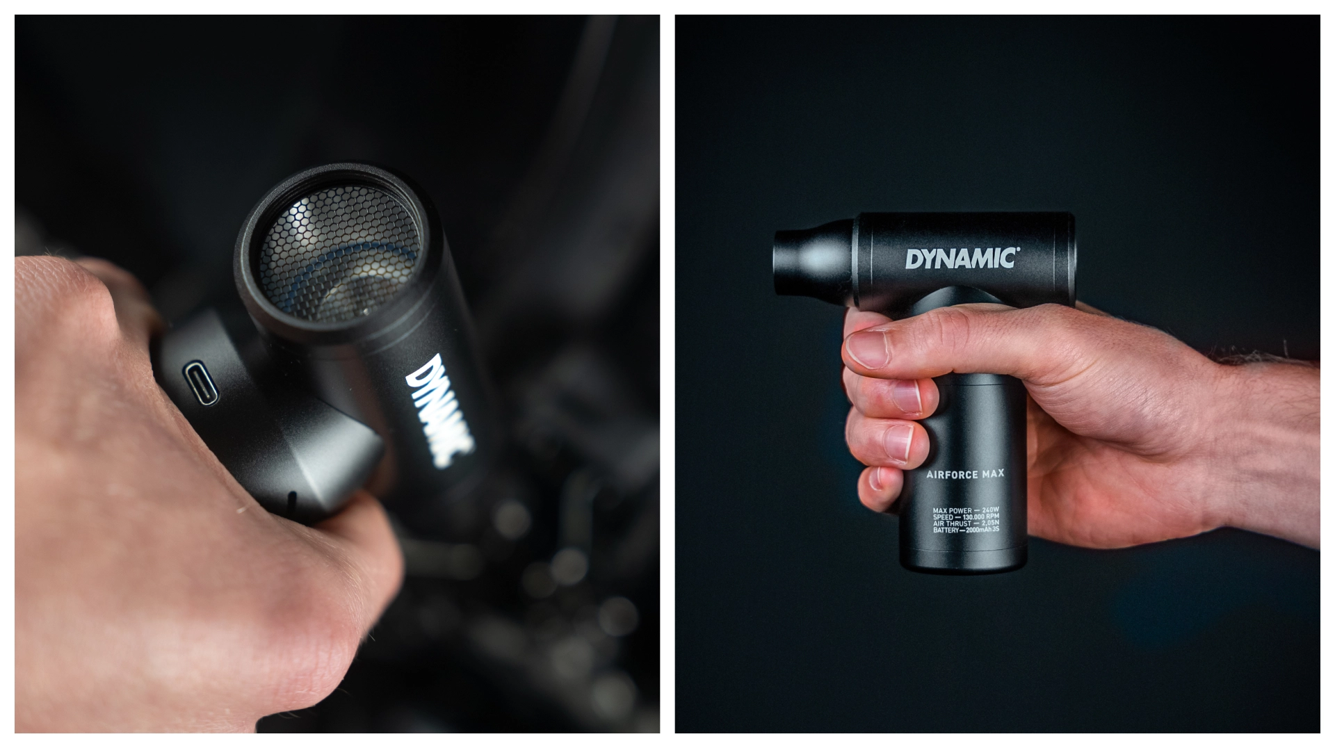 Rechargeable with a USB-C cable, the battery is said to be good for 75 minutes of continuous airflow, which makes it a good fit for cycling teams (Dynamic Bike Care supplies Red Bull – BORA – hansgrohe, Alpecin-Deceuninck, Canyon CLLCTV, FDJ-SUEZ, and Fenix-Deceuninck), families or anyone who needs to clean a few bikes at a time.