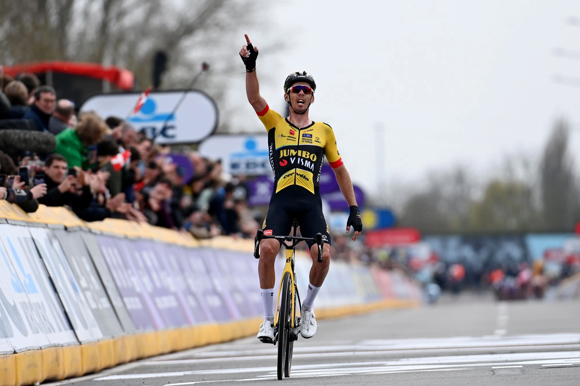 Christophe Laporte (Jumbo-Visma) soloed to victory at Dwars door Vlaanderen, making it five cobbled Classics wins out of five for Jumbo-Visma.