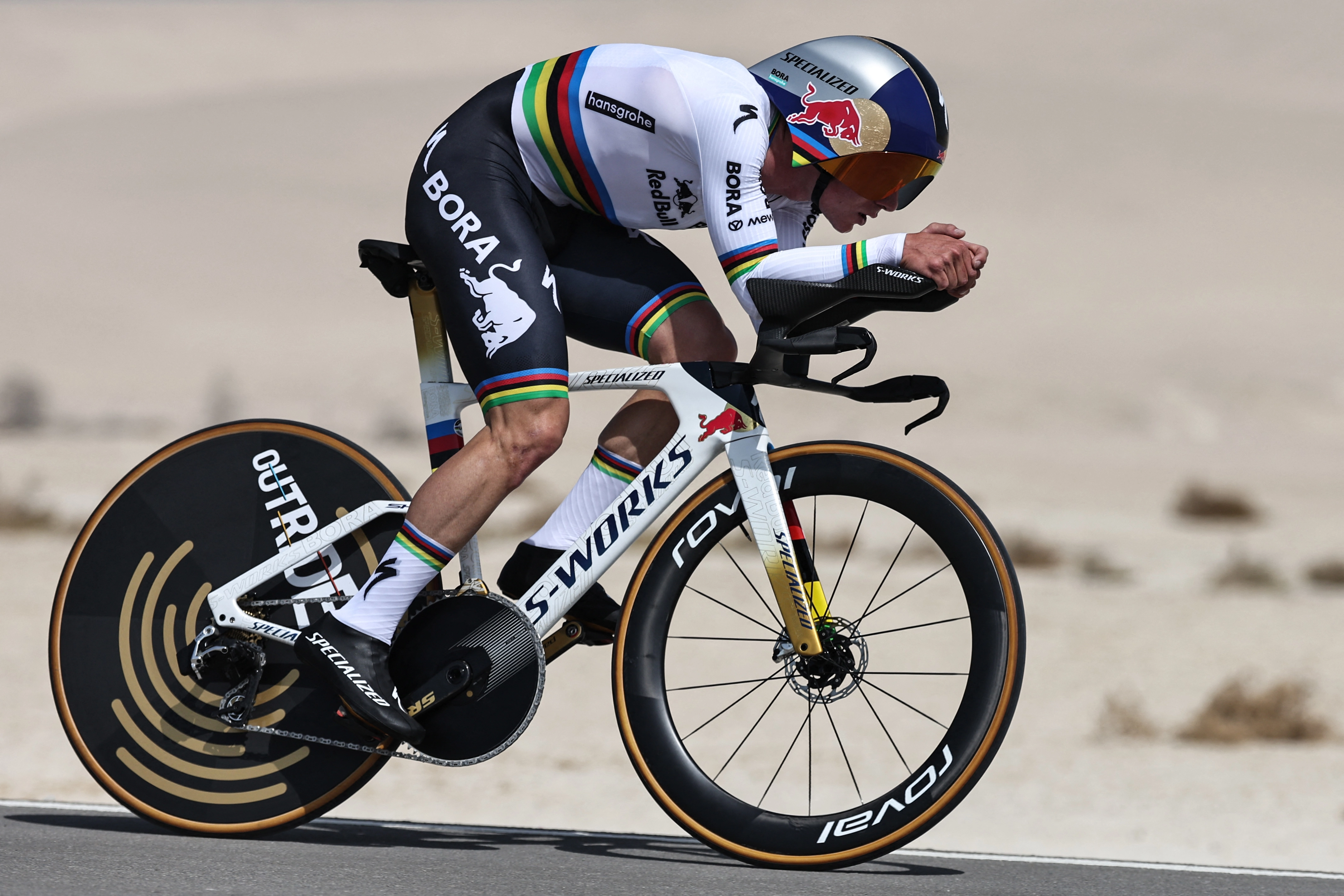 The Red Bull-Bora-hansgrohe rider recorded a rapid 13.03 over the 12.2km test around Hudayriyat Island – a personal best 56.1kph for the Belgian. It left Josh Tarling (Ineos Grenadiers) trailing by six seconds and third-placed Rémi Cavagna (Groupama-FDJ United) at 12 seconds.