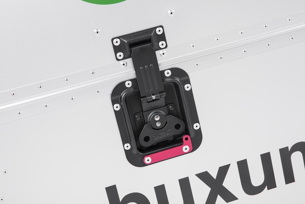 The Buxum opens and closes by way of four impressively sturdy twist latches (two on each side). These are very easy to operate and can be used in conjunction with cable ties and padlocks for added security. The twist latches stand out as being the best I have encountered on a bike bag or box. The quality of construction and components is felt throughout. The strategically placed handles feel good in the hand and work well too when loading or pushing the box.