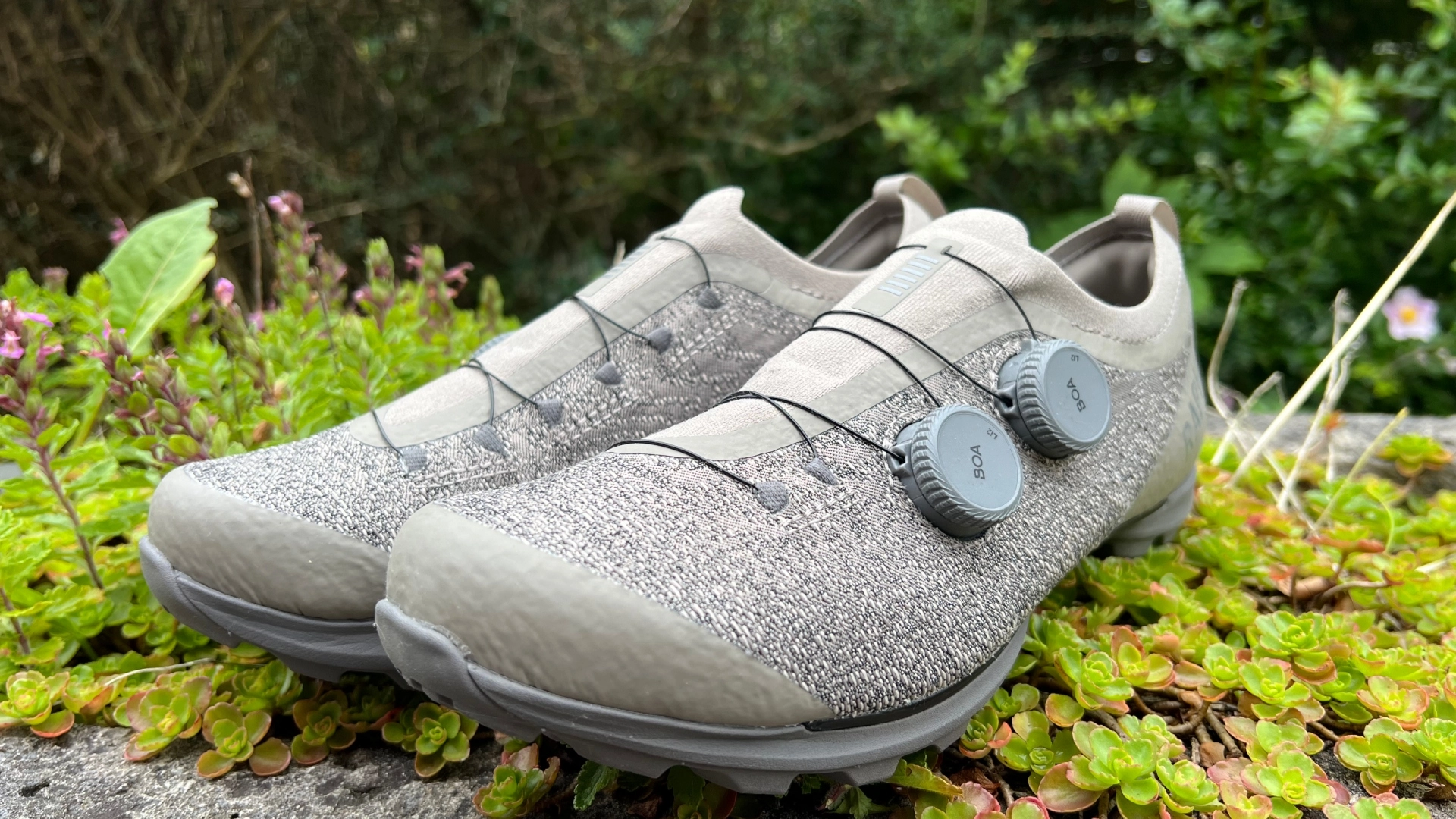 The Rapha Pro Team Powerweave gravel shoes feel like the closest crossover shoe between road and off-road riding. They deliver great power transfer, a high level of adjustability thanks to the Boa dials and foot arch options, and are probably the lightest off-road shoes on the market.