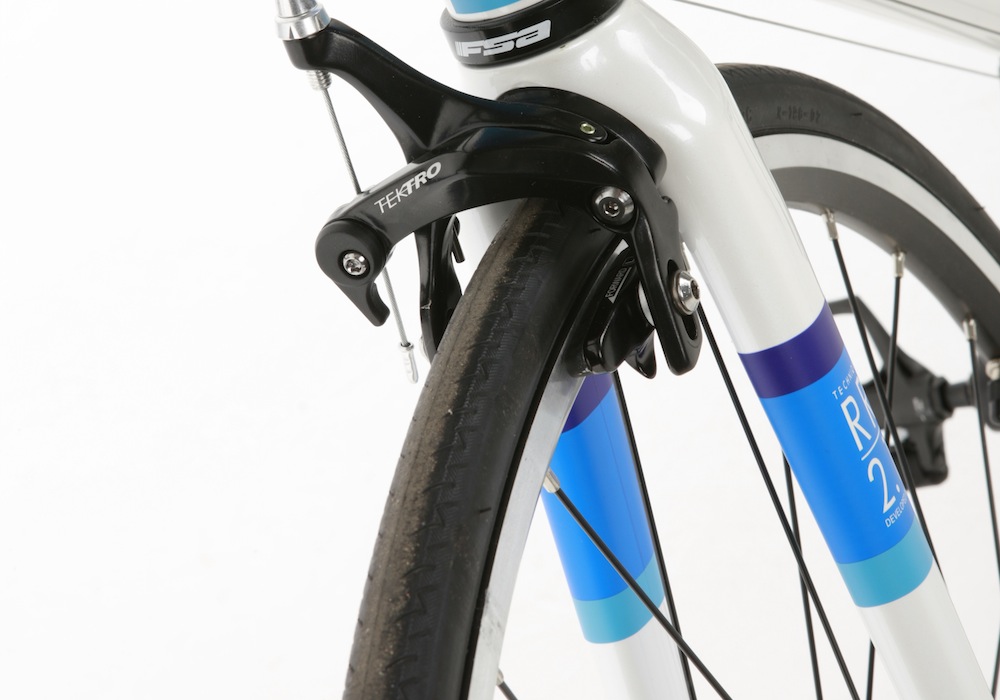 The non-branded quick release wheels have alloy hubs and rims. They are shod with Kenda Kontender Competition 23mm wide folding bead tyres. Brakes are Tektro R312 alloy dual pivot calipers.