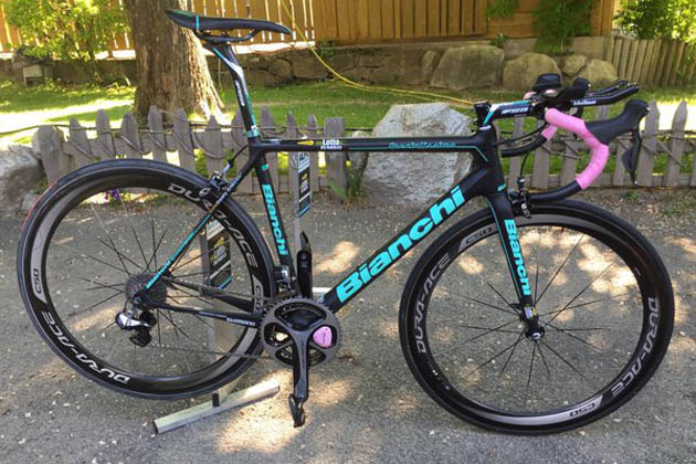 Grand Tour leaders are normally given a bike in the colour of their jersey, but that's not always a good idea as shown by Steven Kruijswijk's new Bianchi.